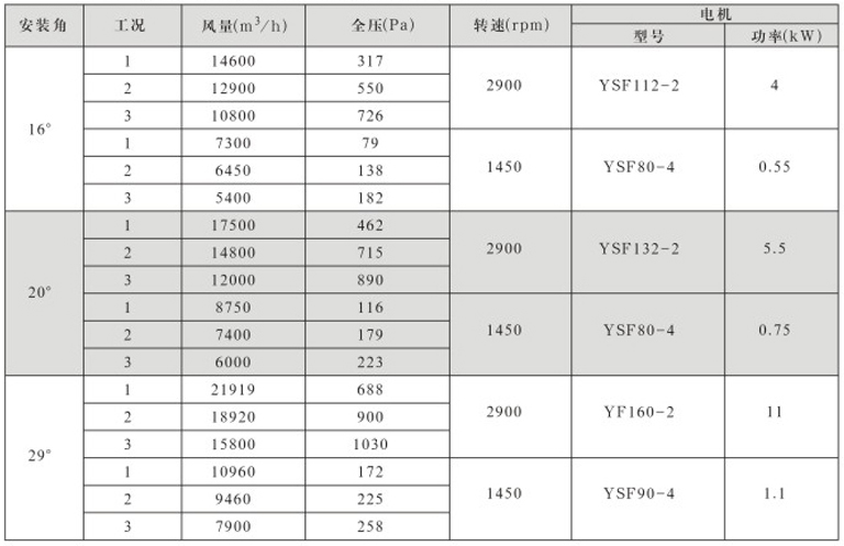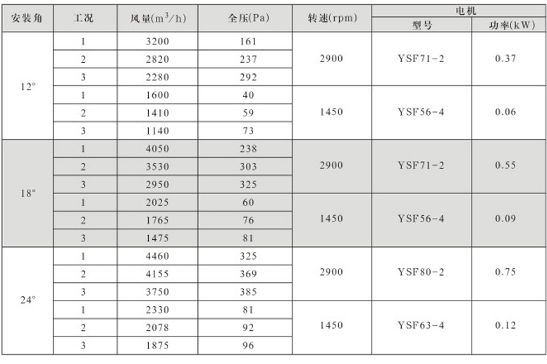 DTF(R)-4.5(6葉)系列地鐵、隧道軸流風(fēng)機(jī)性能表
