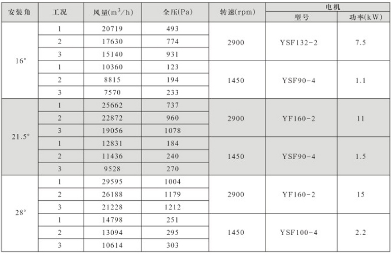 DTF(R)-2.8(6葉)系列地鐵、隧道軸流風(fēng)機(jī)性能表